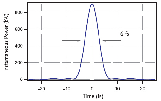 图二:典型的venteon power 变换极限脉冲,脉宽 6fs。 |